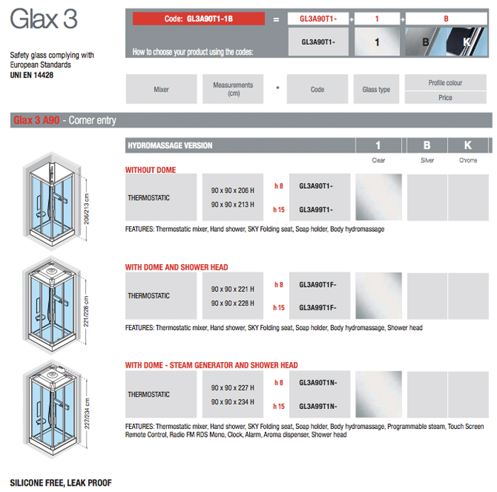 Novellini - Glax 3 A90 - Corner Entry Shower Cubicle