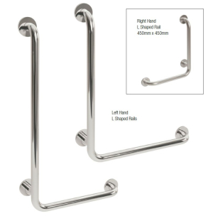 21. Bathex Knowle L Shaped Grab Rail 600x600mm with Finish and Hand Options (Stainless Steel 25mm)