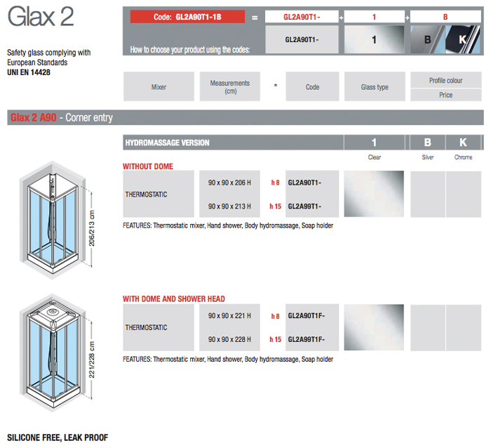 Novellini - Glax 2 A90 - Corner Entry Shower Cubicle